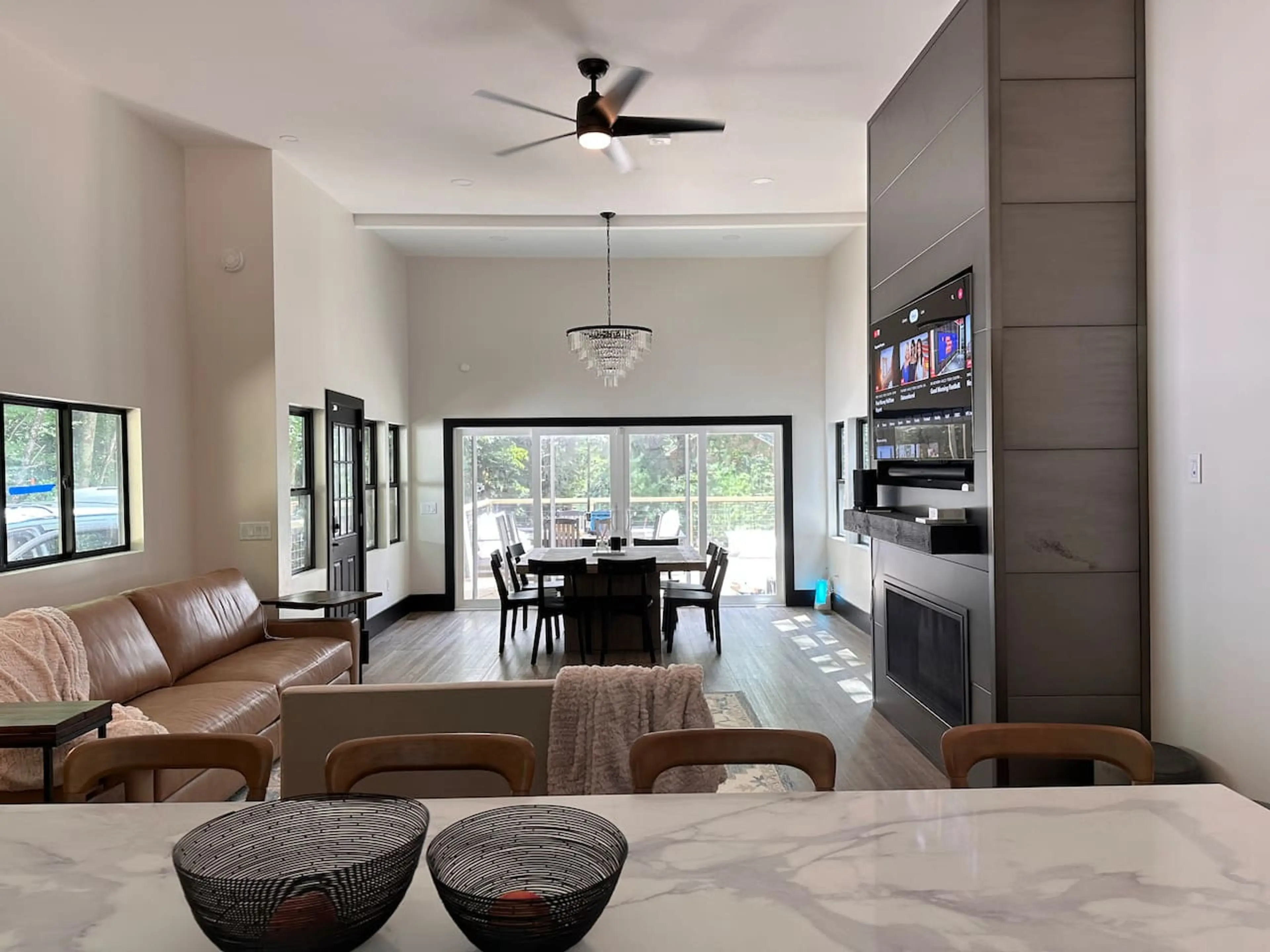 This unique place has a style all its own. Eagles Landing is a brand new high end contemporary house with vaulted ceilings and all the amenities you’re looking for. Large backyard, amazing deck for lounging and playing games, hot tub, grill, smoker, indoor fire place, outdoor fireplace.. Stroll d...